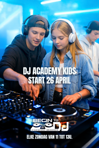 DJ Academy is 1 x per week gedurende 6 weken. Op zondagmorgend van 11u tot 13u. Start datum: zondag 26 april 2026